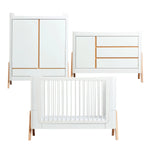 Hera 3 Piece Set - Cot, Dresser & Wardrobe - Scandi White/Natural