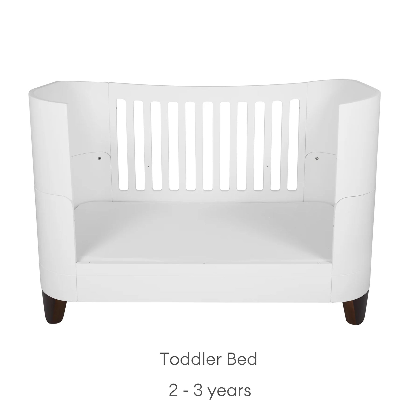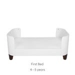 When the baby is ready to move to the nursery, expand to a full-size Cot Bed. When the time arrives for independent sleeping, seamlessly transition to Toddler Bed and eventually, the super cute First Bed. A true 0-5 years solution containing all parts and components required for each stage.