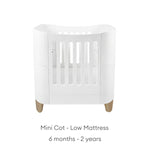 1. Solid wood Mini Cot. Suitable from newborn to 2 years with optional extension to 5yrs+