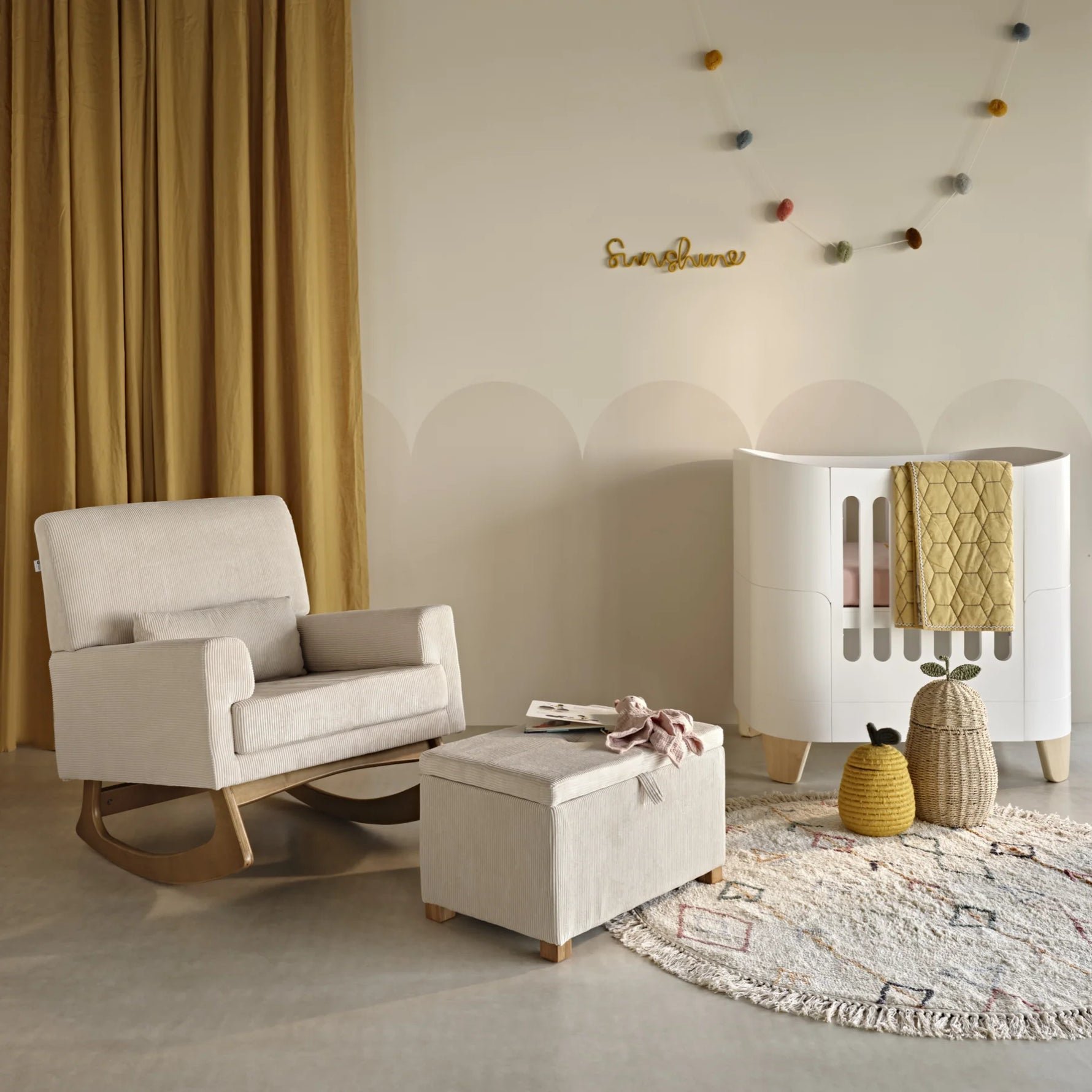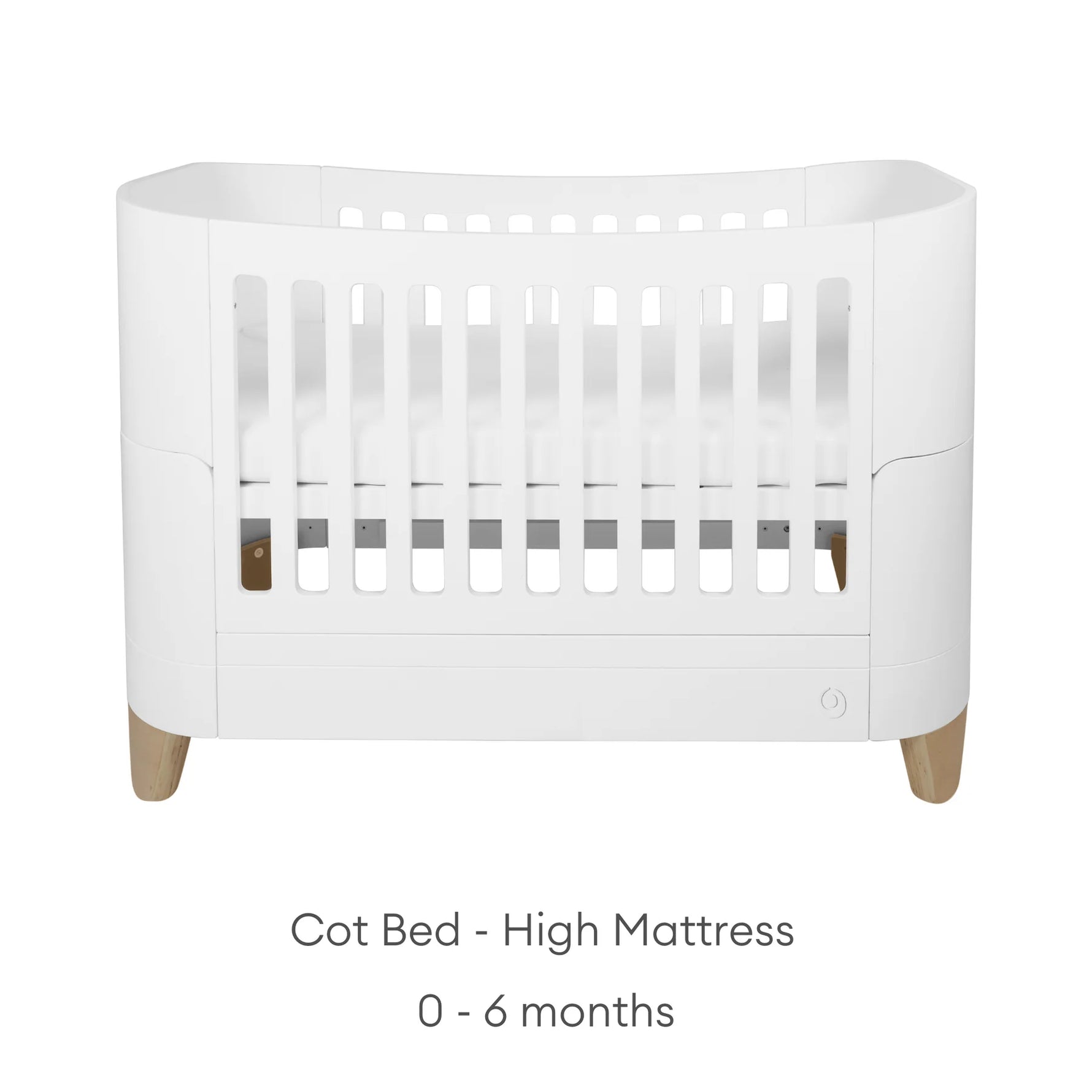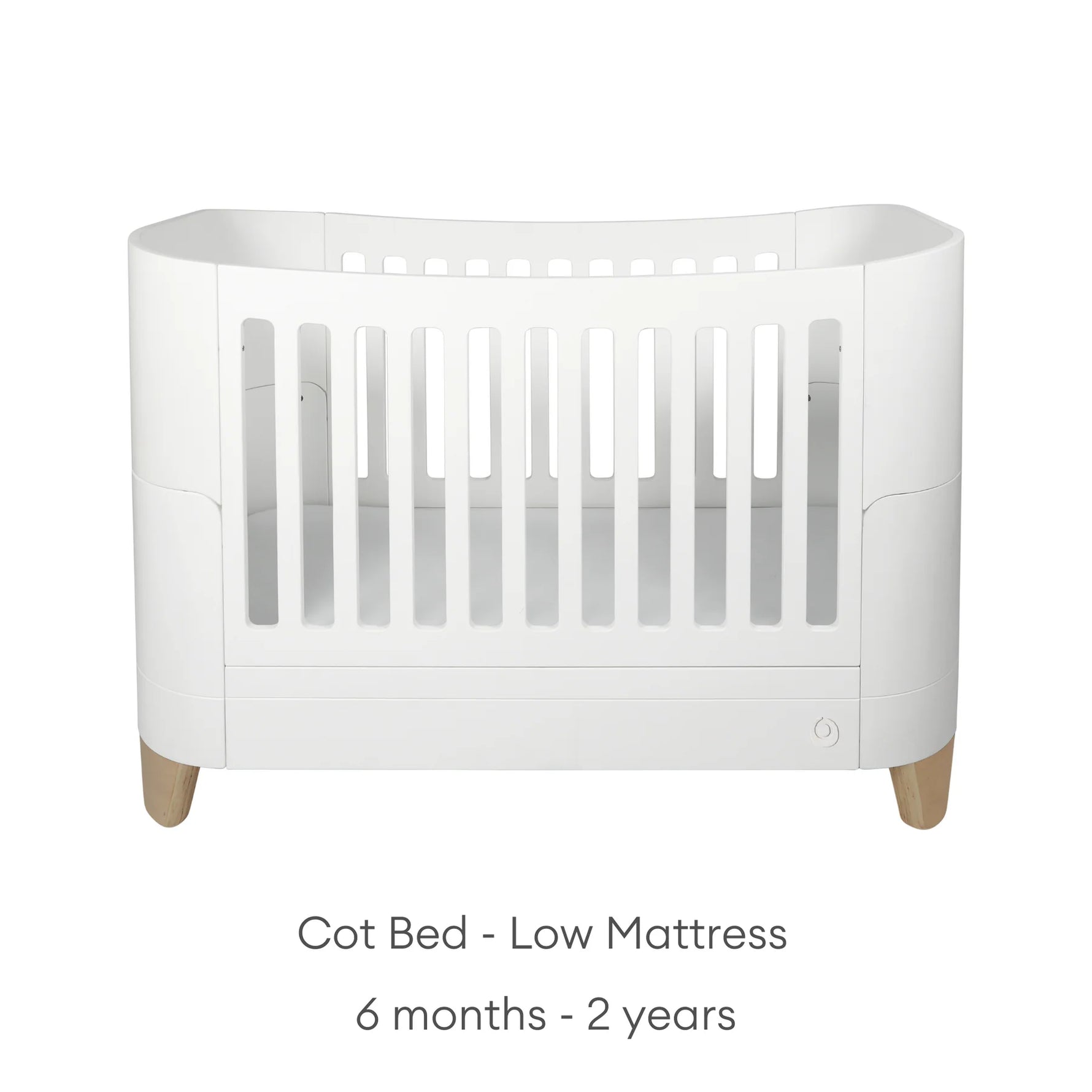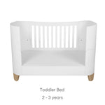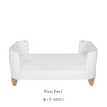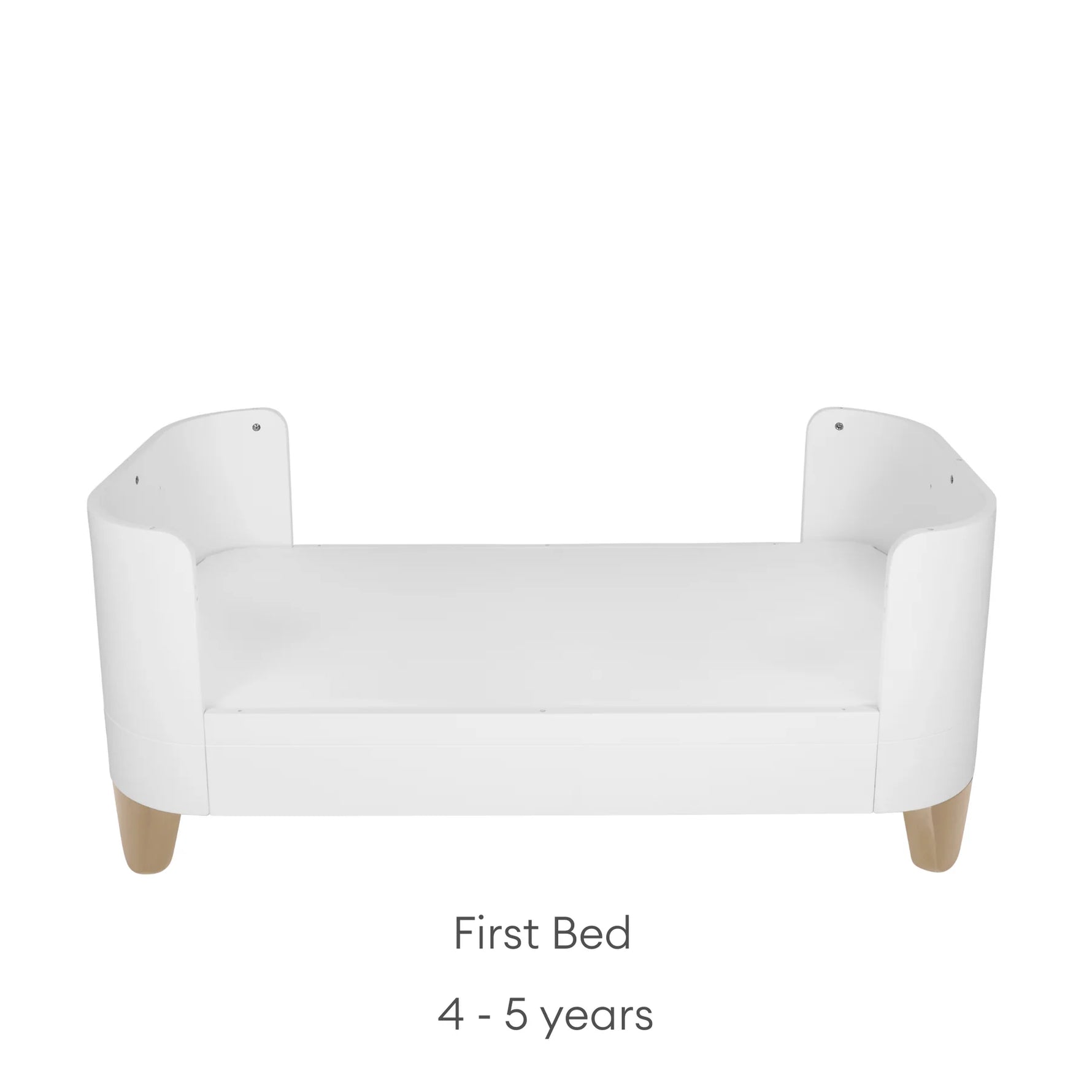 When the baby is ready to move to the nursery, expand to a full-size Cot Bed. When the time arrives for independent sleeping, seamlessly transition to Toddler Bed and eventually, the super cute First Bed. A true 0-5 years solution containing all parts and components required for each stage.