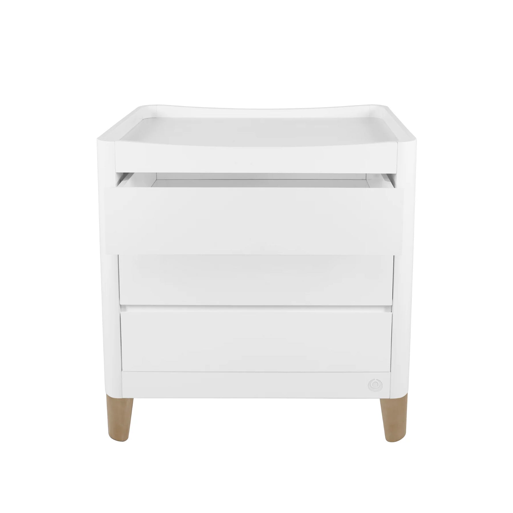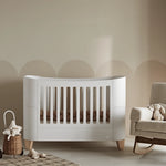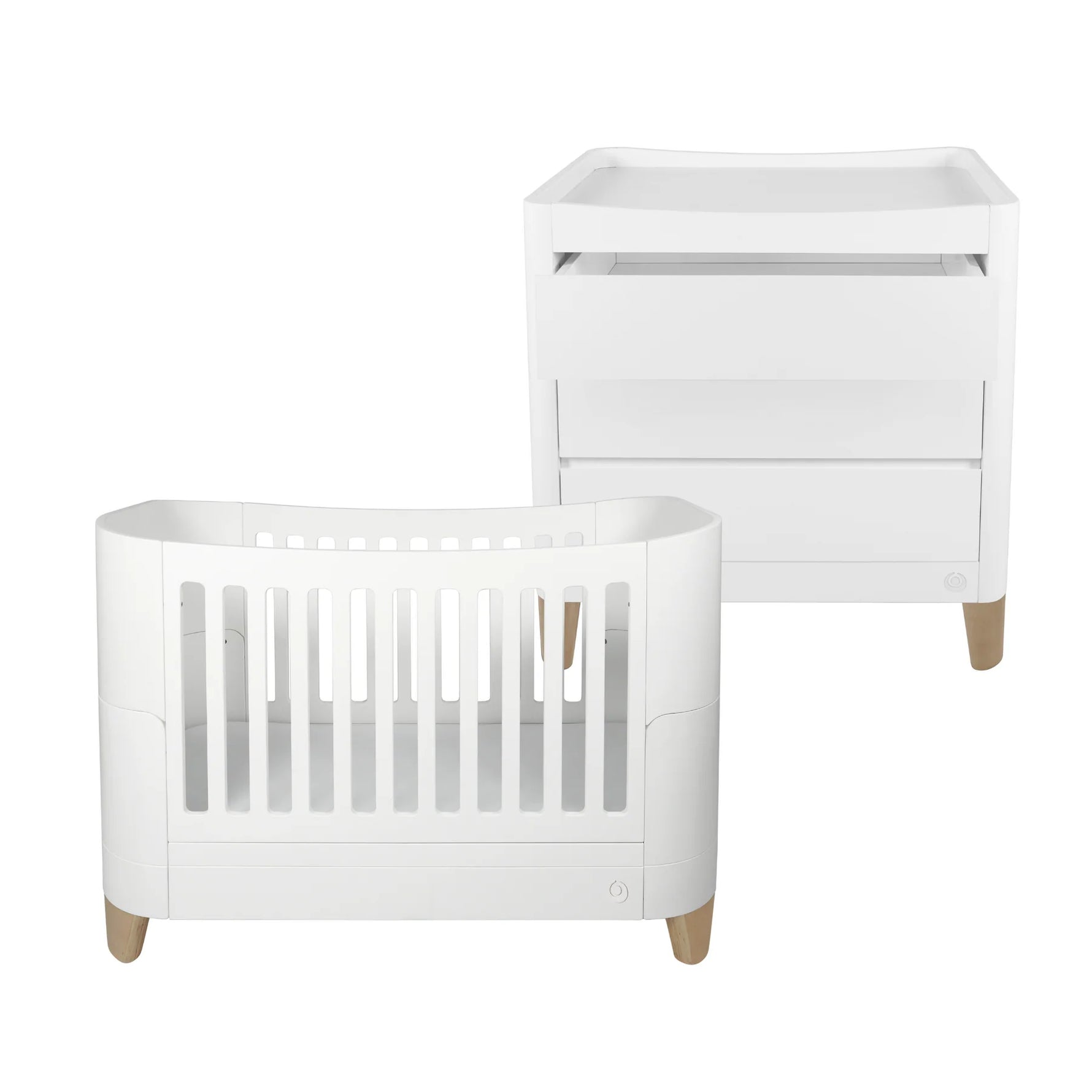 Handcrafted from sustainably sourced birch wood, the Serena Cot Bed and Dresser are 100% composite-free, guaranteed low emissions and built to last the test of time. With their unique contoured design, you can customise your Cot and Dresser with a choice of Natural or Walnut legs.