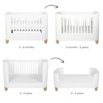 2. Easily convertible through 4 different stages (all parts included)(Newborn Cot - Baby Cot - Toddler Bed - First Bed).
