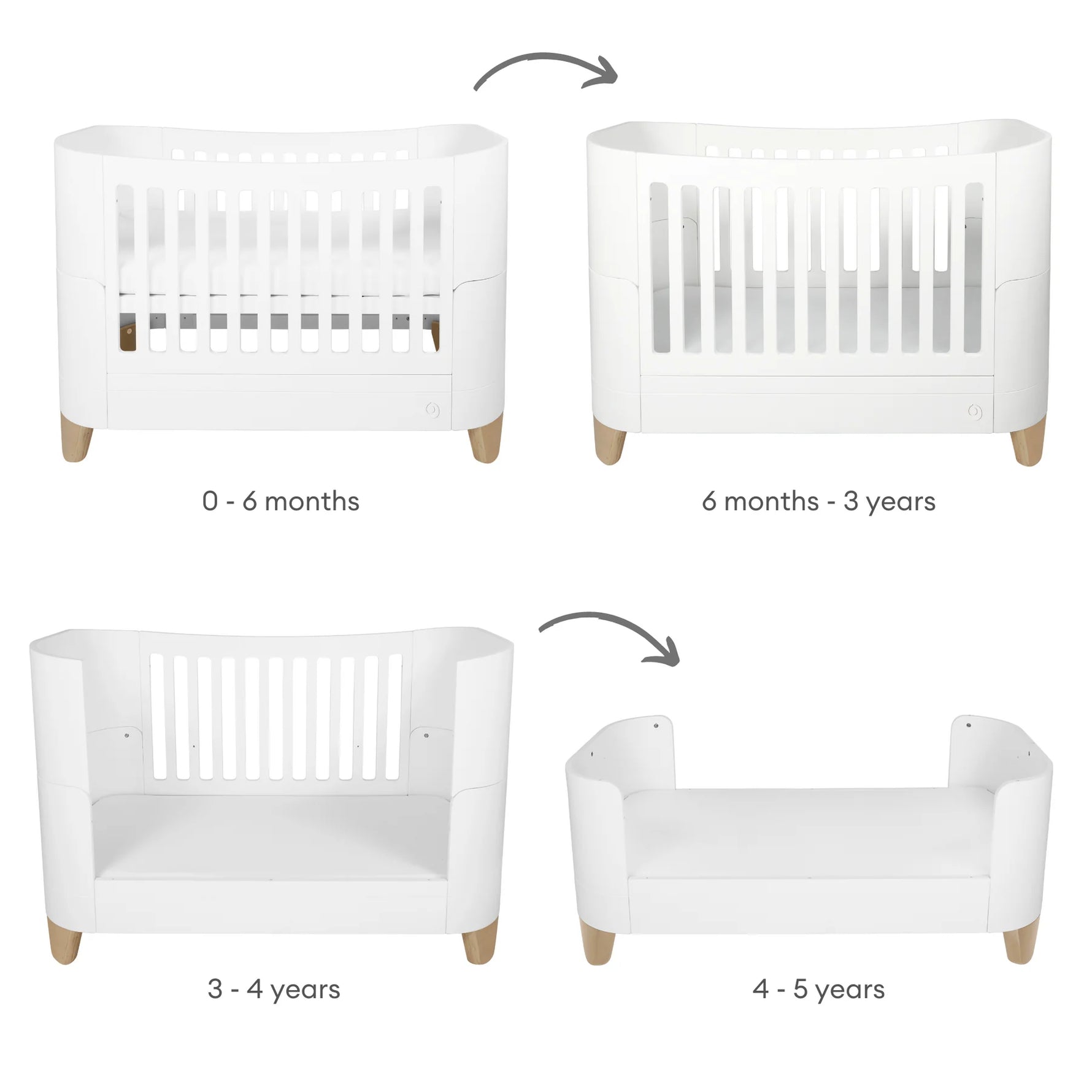 From the moment you bring your little one home, through to childhood and beyond, the Serena Convertible Cot Bed effortlessly adapts to their growing needs with two mattress heights and includes all parts to convert the cot to the Toddler Bed and First Bed, making the cot suitable from birth to 5 years old.