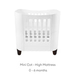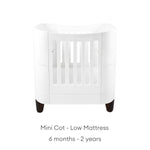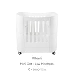 The Serena Mini Cot is the ideal bedside cot that can be used from birth up to 2 years old. Made from 100% natural wood and compact in size, the Serena Mini Cot easily converts from newborn bed (0-6 months) to baby cot (6 months to 2 years). Supplied with lockable swivel wheels, the Serena Mini Cot can be easily moved from room to room. Extend the life of your Mini Cot with the Cot Bed Extension Kit (sold separately) up to 5 years.