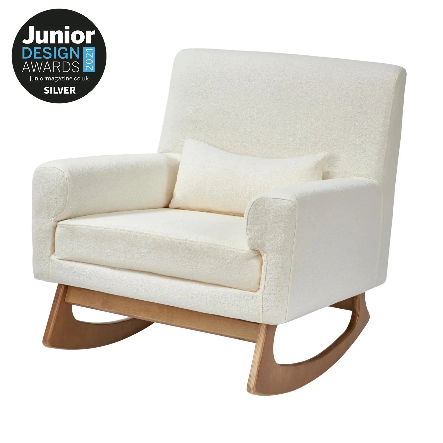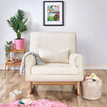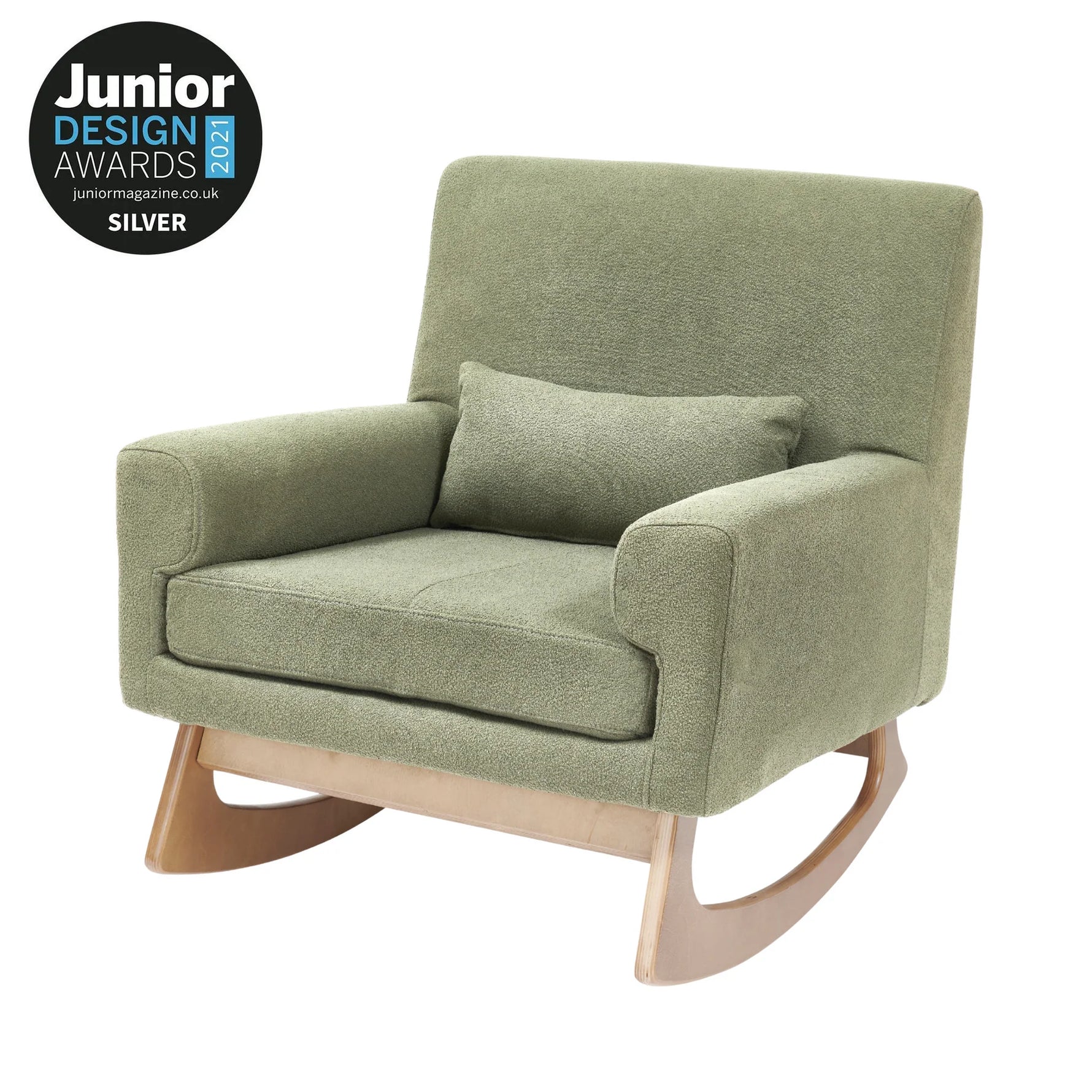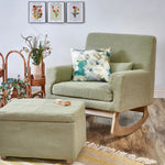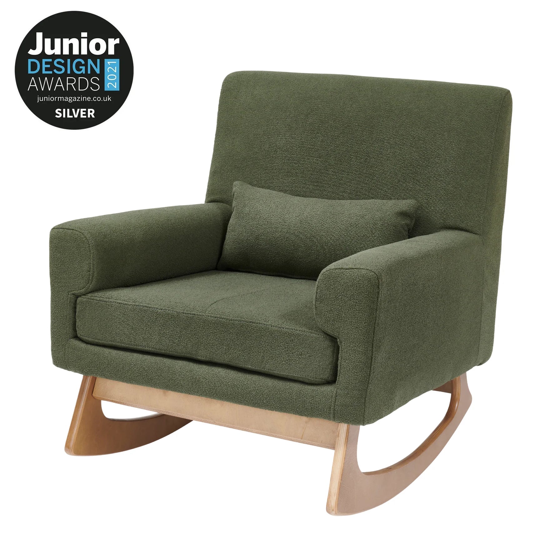 The Serena Bouclé collection features a soft, durable, textured fabric made with loops or curls of yarn. Visually interesting, this tactile textured fabric offers greater warmth and durability to withstand regular wear and tear. Added to the classic styling of the Serena Rocking chair, the Boucle fabric lends depth and interest and an ultra fashionable decor statement in your nursery or living space. Choose from a choice of serene neutrals in Chalk or Biscuit or our beautiful botanical inspired Sage or Forest green with oak legs.
