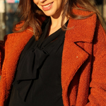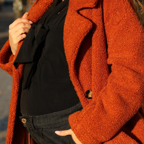 The Margaux Maternity and Nursing Blouse is inspired by the 70's neo-burgundy trend. More sober with its black colour, it is nonetheless a piece that brings a sophisticated touch to your look.