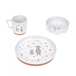 LÄSSIG’s Tiny Farmer porcelain children’s tableware set comes with removable silicone non-slip grips. The children’s tableware is ideal for children from the age of 3 and is dishwasher and microwave safe.