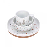 The porcelain set includes a plate, a bowl and a cup. All items of the children’s tableware set from LÄSSIG’s Tiny Farmer collection are also available separately