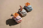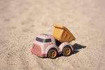This pink tip truck is the perfect toy for the little builders. With its tough and colorful colors, this dump truck offers endless fun. Your little one can let their imagination run free while transporting water, sand or toys and dumping them with the dump bin. The dump truck is made of durable material and can take a beating. With its sturdy wheels, it can easily ride over different surfaces. Size: 17cm. Comes in touch box. Suitable for children from 18 months.