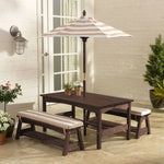 The KidKraft Outdoor Patio Set is ideal for enjoying a picnic, playing games or simply visiting on beautiful days. Take the homework outside and let them get some fresh air while they study! Bring the dolls, action figures and building bricks outside for a whole new adventure in the back yard. The adjustable umbrella offers shady relief from the hot summer sun and the padded benches are perfectly kid-sized. Constructed from weather-resistant wood with a beautiful stained finish, this set will look good for years to come. Fun, functional and just their size..