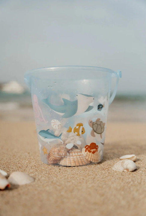 Let’s collect shells at the beach! Bring your beach bucket and search the shoreline for the most beautiful seashells. You might even find a treasure between all those shells in all sorts of beautiful shapes and colours. With the lovely Flowers & Butterflies illustrations of flower, birds, butterflies and even a little bunny, this beach bucket is already a treasure by itself. It has a handle so your little one can carry it along while walking the beach. This beach bucket I not only great for shelling, but can also be used to get water from the sea or to fill up with sand to build a and sculpture. A simple, yet versatile toy for a great day of fun at the beach.