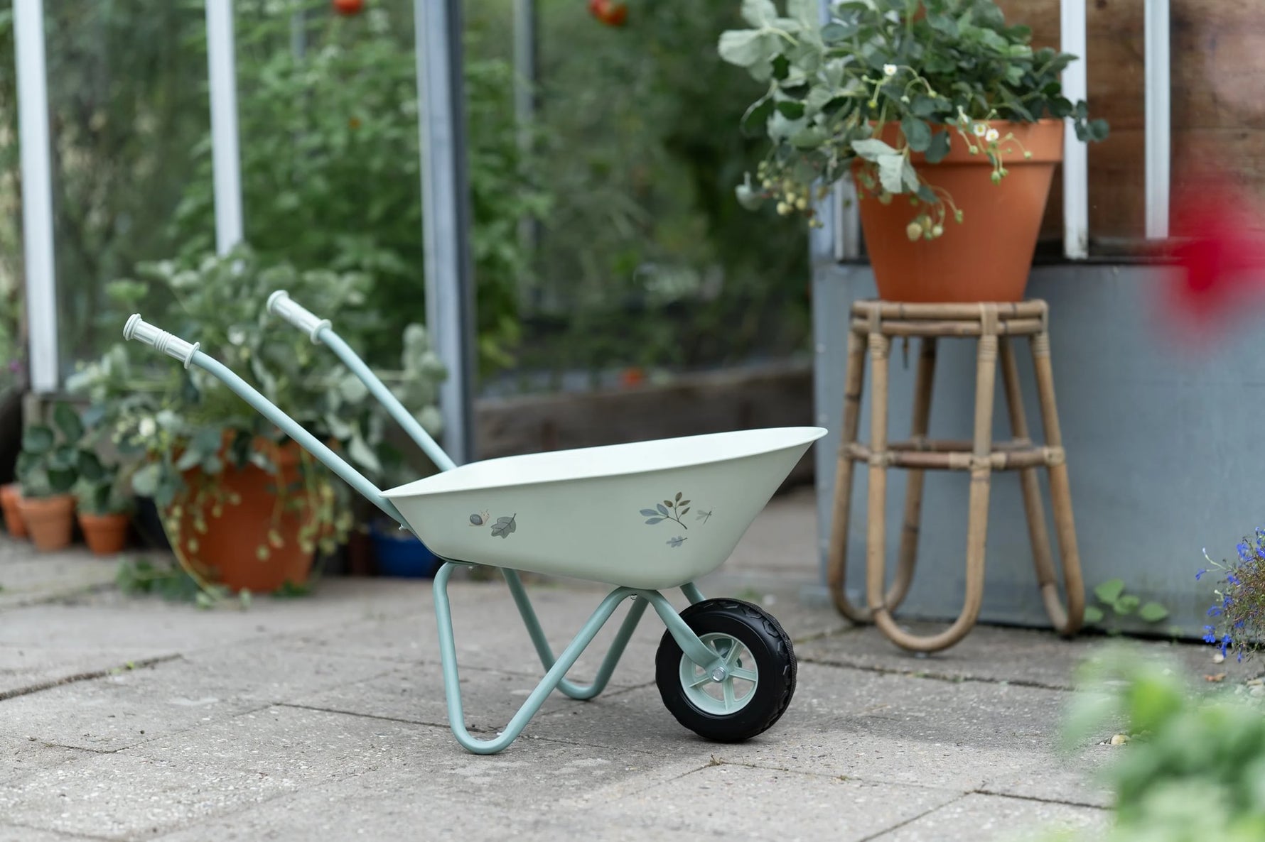 Bring fun to the garden with this sturdy wheelbarrow! Made of metal with plastic handles and a plastic wheel, it offers stability and convenience. The large bin is ideal for transporting soil, plants or toys. With the cheerful colours and illustrations from the Forest Friends theme, this wheelbarrow adds a playful touch to any garden adventure. Perfect for young gardeners who like to be active!