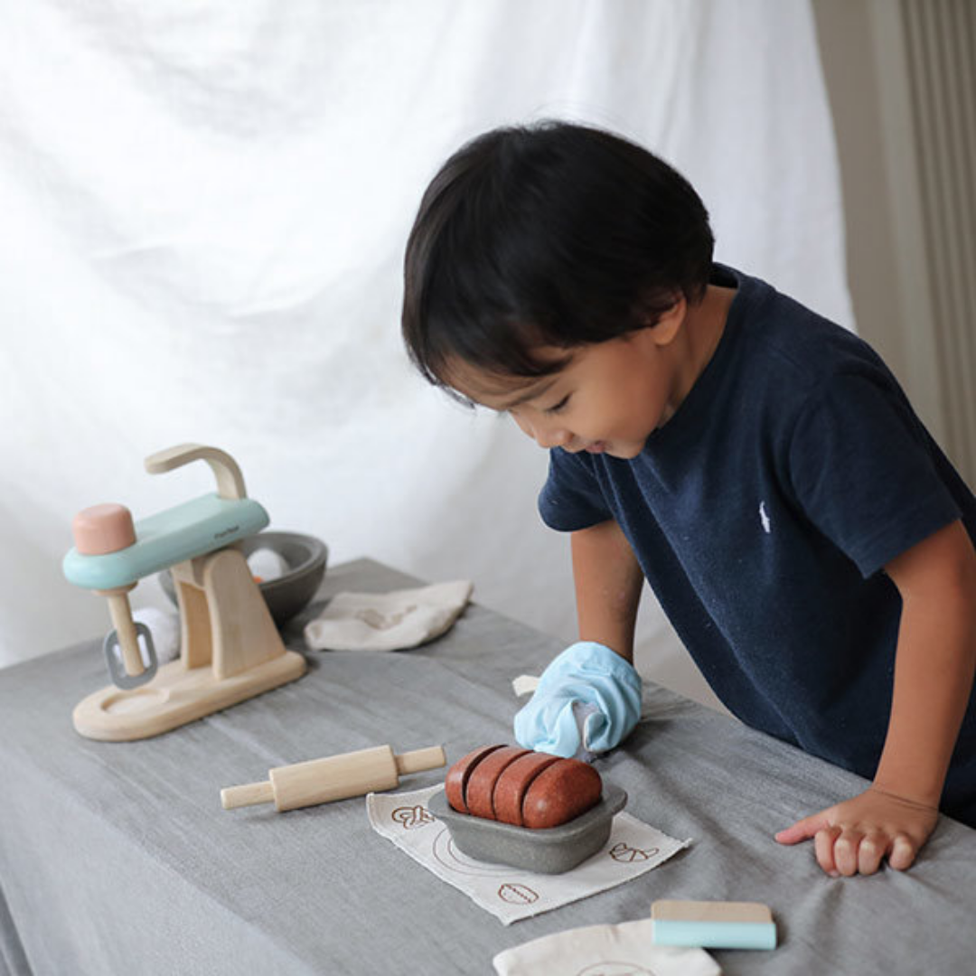 With this bread baking set children can make delicious bread. This is a super fun toy for small bakers. Ideal toy for the development of hand and eye coordination and fine motor skills in young children.