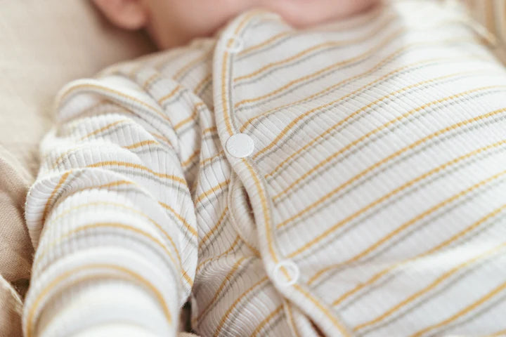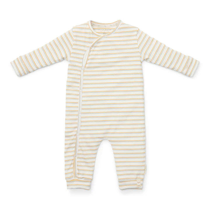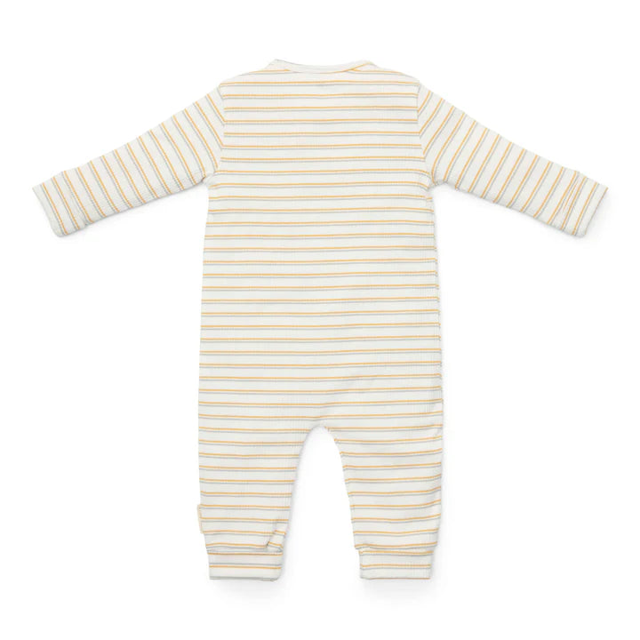 Live all their first moments in style! This adorable playsuit will comfortably wrap your little one from head to toe. It is made from organic cotton with a ribbed structure and has a striped pattern in multiple colors, making it perfect to combine with other items. The snap fastener makes it easy to dress and undress your little one, which is practical for parents and comfortable for babies. Combine it with other items from the coordinated Little Farm collection to create adorable outfits