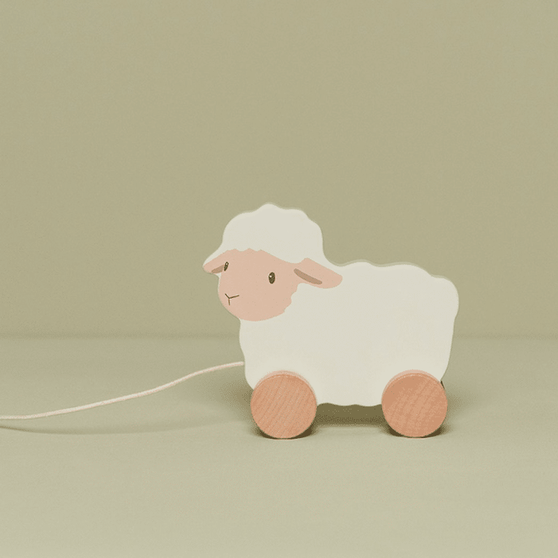 Go on an adventure together with this pull-along animal from Little Dutch. Pull this cute little sheep along by its string and it happily bounces along with you. Fun to combine with the pull-along animal chickens.