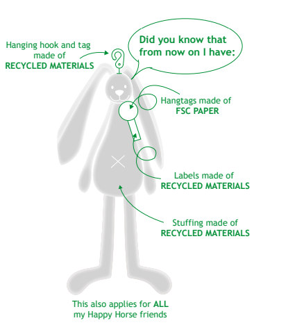 Happy Horse has been creating natural, fun, irresistible soft toys for 60 years - goal is to design adorable characters and lifelong friends for every child. The products, designed in The Netherlands, are simple in concept and always imaginative, with a modern flair. Happy Horse uses only the finest materials available and ensure that the products are 100% baby friendly and suitable from birth. All of toys is made of 100% recycled polyester. The toys are machine washable.