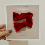 Hand-sewn into the cutest bow shape and securely attached to a snap or alligator clip.