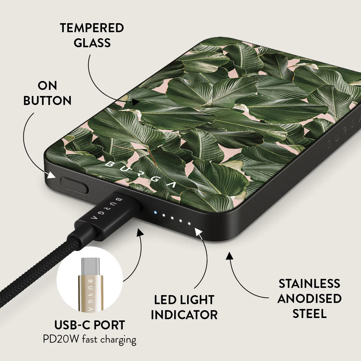 Charge your devices on the go with BURGA’s Magnetic Power Bank.