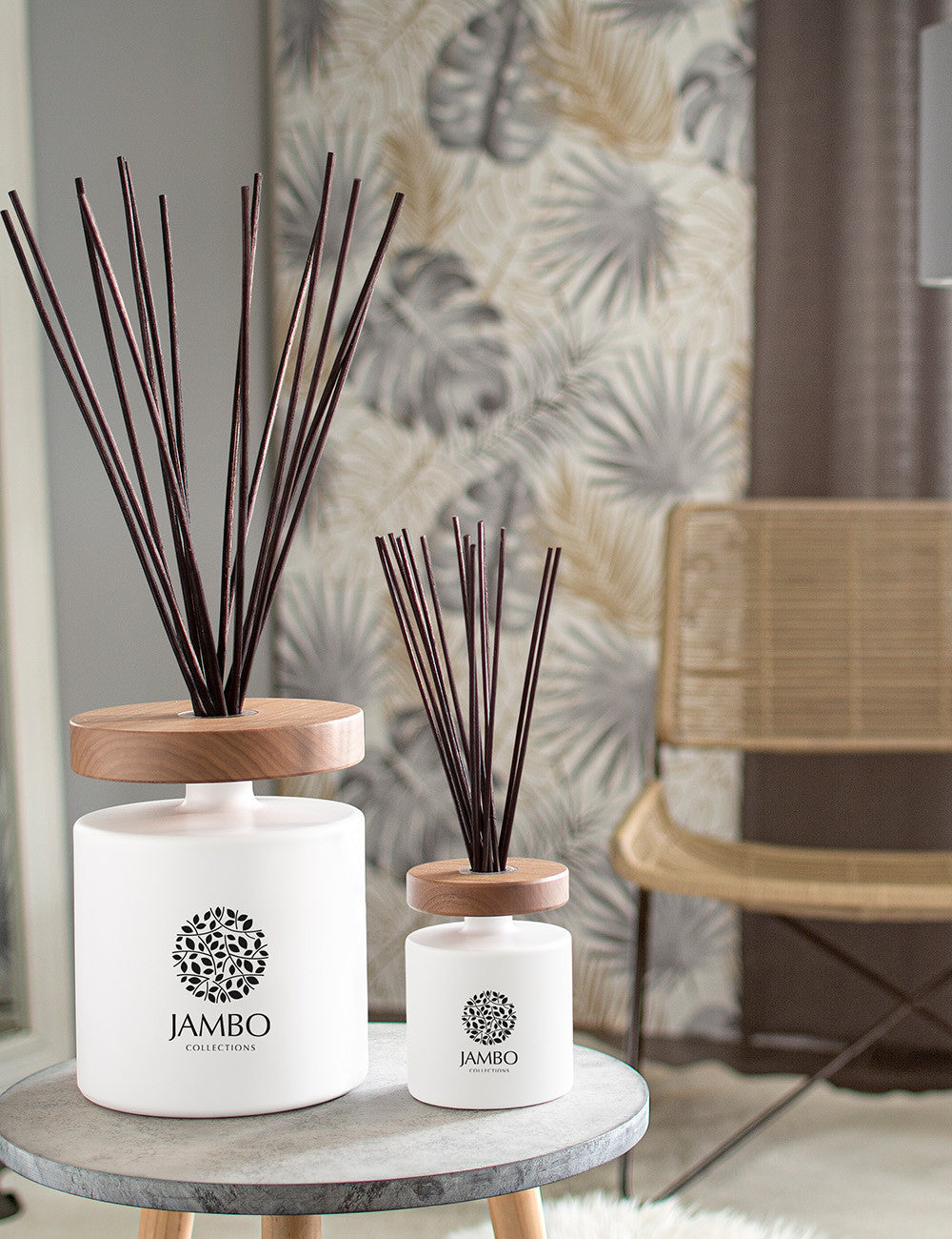 Meticulously crafted using premium-grade materials to marry elegance with functionality, these diffusers feature sleek designs, adorned with high-quality glass & sustainably sourced wood or ceramic accents, exuding sophistication in every detail. Each diffuser boasts a unique blend of scents meticulously curated to captivate and invigorate, offering a luxurious and long-lasting aromatic experience. Infused with quality and elegance, our diffusers are not just a decor piece but a statement of refined taste and unparalleled craftsmanship. Indulge in the art of scent with Jambo Collections.