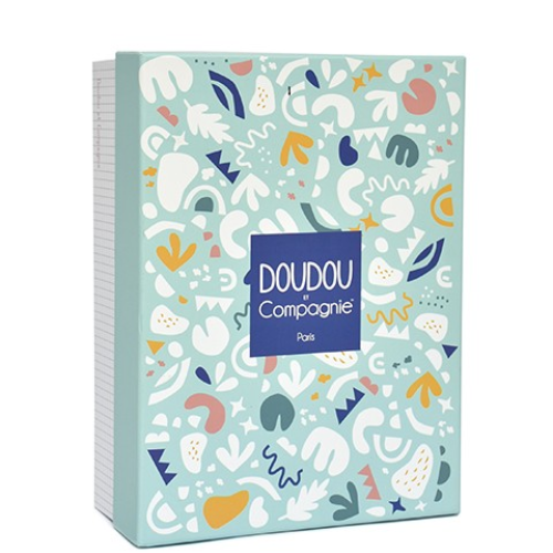 Filou the Calinosaurus is a pretty green baby comforter. Made in an ultra-soft material, it looks great with its combinations of ocher, terracotta and ultramarine blue swaddle colors as well as its small checkered print. This cuddly toy in bright colors will reassure baby, delighted to find so many labels and fancy knots to chew on. It has a beautiful box with graphic patterns, ready to be offered.