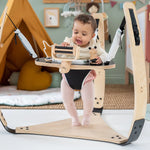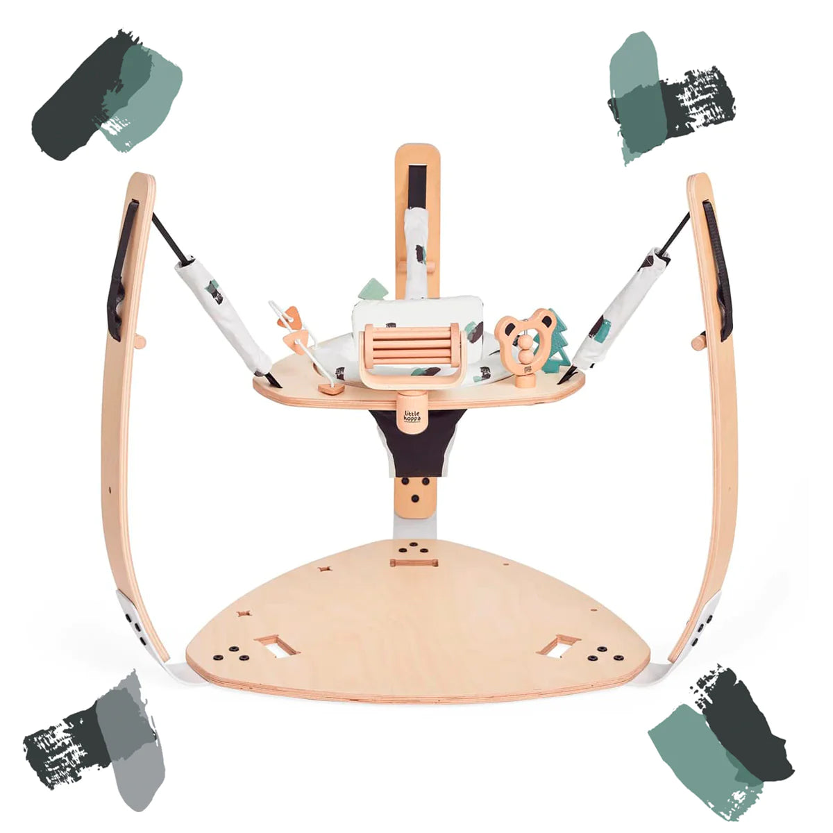 Jump for the sky with the Little Hoppa Baby Bouncer, as babies love finding their feet. With its unrivalled good looks, finally, a baby bouncer to be proud of. It can be used from approx 4+months to 24 months, making it a long lasting investment. The bouncer easily adjusts to three different heights as baby grows. It includes 3 interactive toys and our super cute tree teethers. The high quality cotton seat pad and spring covers are machine washable.