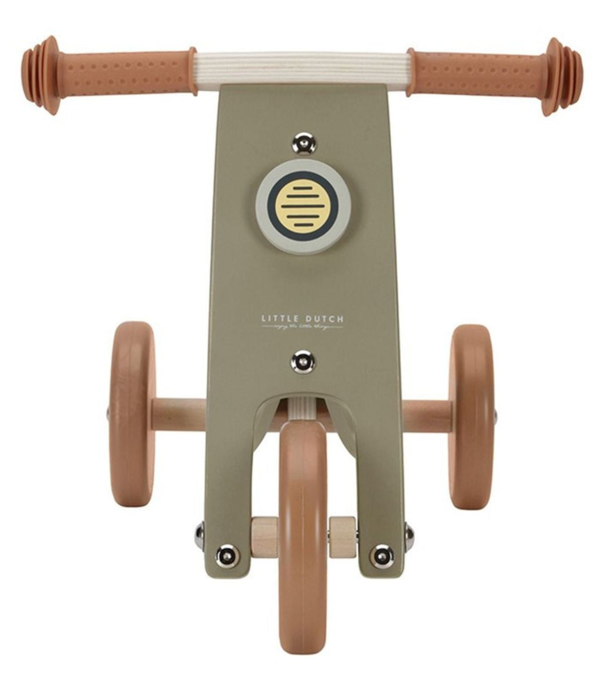 The wooden tricycle in the colour Olive by Little Dutch is a great choice for parents looking for a stylish and safe balance bike for their child. It has a sturdy seat to provide comfort and stability for your child. The handlebar features two rubber handles for a good grip, and the wheels have a rubber edge for extra grip and safety. This tricycle is perfect for developing your child's motor skills while also providing hours of fun. With its beautiful Olive color, it is also a real eye-catcher. Adult assembly required.