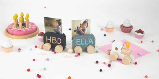 Make your child’s special day extra fun with a train that features a space for their picture and a chalkboard surface for writing their name! This Celebration Train comes with 1 locomotive and 2 bogies. Incorporate it into their special day and watch as your child’s face lights up when they see it personalized!