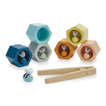 Help develop fine motor skills by matching the bee to its hive using the pincer grasp or the forceps. It also reinforces color recognition and counting.