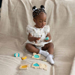 The Matchstick Monkey Playtime Animal Puzzle Game is the perfect way to encourage early development through play. The first part of the game involves fitting the 4 puzzle shaped pieces into a base to make a complete shape. Then, you can match your animals up with their coloured slots. This helps to develop hand-eye coordination, logical thinking and encourages animal, colour and shape recognition. It has thick wooden pieces designed with little hands in mind so the pieces are easy to grasp and pick up. Made from plywood, with non-toxic and water-based paints. A perfect gift for toddlers.