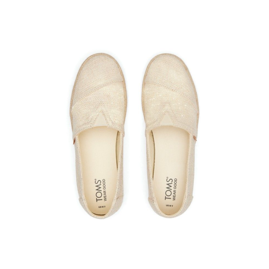 Your favorite platform Alpargata shoe with added rope and sparkle. Lean into boho chic style with the heightened midsole rope wrap, linen upper featuring metallic details, and slip-on design. Pair with anything in your closet to look and feel your best. Wear TOMS. Wear Good.