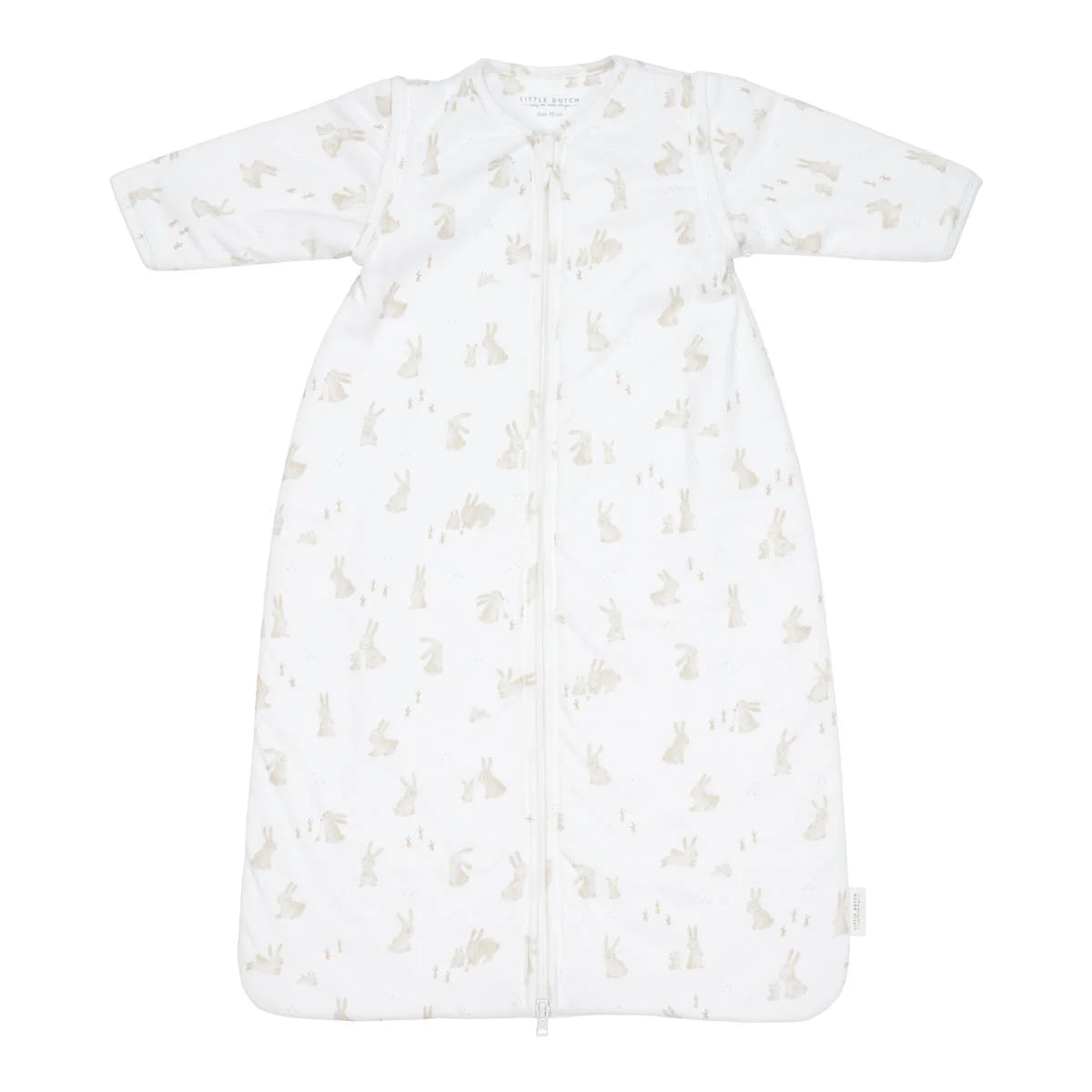 The Little Dutch winter sleeping bags with zip-off sleeves are ideal during the cold winter days. A winter sleeping bag ensures that your child can sleep comfortably and safely. A sleeping bag makes it harder for your child to roll over from back to stomach, to climb out of bed and to wriggle around. The winter sleeping bag has a front zip that opens from the bottom to the top. This prevents your child from taking off the sleeping bag by himself. The outer fabric of Baby Bunny sleeping bag is made of 100% cotton and the lining is made of 100% polyester.