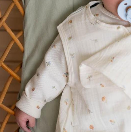 Wrap your little one in the cozy embrace of this lovely sleeping bag, designed to make bedtime a breeze. Crafted from 100% organic cotton muslin fabric, this sleeping bag offers wonderful softness and breathability, making it the perfect choice for warm summer nights. Pair with long sleeve pajamas or a bodysuit depending on the weather. The captivating Forest Treasures design embraces your little one with the adventurous beauty of nature, evoking a sense of wonder and tranquility that fosters sweet dreams. The sleeping bag features a downward-closing zipper with coverage on both the inside and outside, ensuring a secure and soft enclosure. The sleeping bag is Oeko-Tex certified and available in 70 cm, 90 cm and 110 cm.
