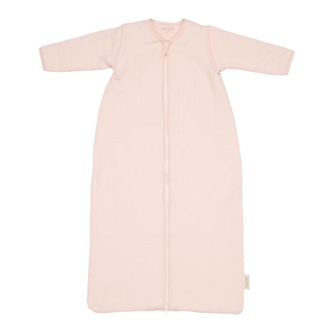 Little Dutch's winter sleeping bags with detachable sleeves are ideal for cold winter days. A winter sleeping bag ensures your child can sleep comfortably and safely. A sleeping bag makes it harder for your child to roll from their back onto their stomach, climb out of bed or throw off their covers as they toss and turn in their sleep. The winter sleeping bag has a zipper on the front that opens from the bottom to the top. This prevents your child from getting out of the sleeping bag on their own. This winter sleeping bag with from the Pure Soft Pink collection has a lovely soft pink colour. The product has a TOG value of 2.6