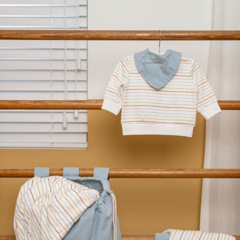 This Little Dutch bandana bib is essential when your child begins teething. When the first teeth begin to appear, your child may start to drool more. The bandana is made from 100% cotton with excellent absorbent properties. You can even use this bandana bib as a stylish scarf! The bib is lined and has two press studs so it is easily adjustable. This one is from the Pure Soft Blue collection.