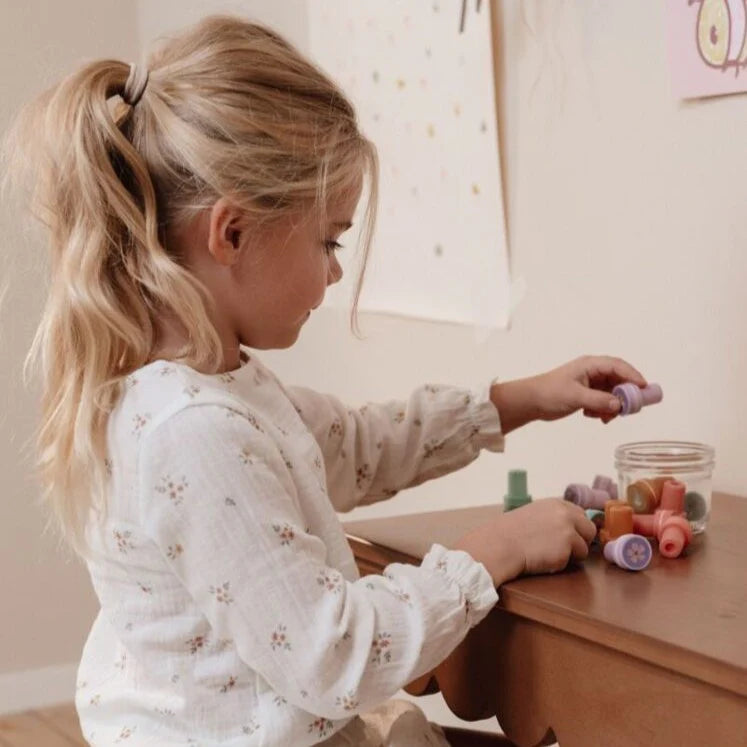 Let your little one create their own gorgeous flower garden with the Fairy Garden stamps. This stamp set contains 16 different stamps, including cute deer, squirrels and ladybirds, as well as a strawberry, flowers and a bee. The stamps are self-inking, so you don't need any loose ink - easy and ready to use straight away! A fun and easy way to stimulate children's creativity while developing their fine motor skills. Suitable for children aged 3 and up.