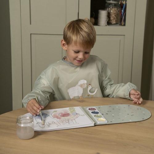 Get ready to create a real work of art! Do you have everything you need? Paint, brushes, paper and, of course, this adorable apron! It keeps your clothes clean and dry. So you can concentrate on creating the most beautiful works of art. This waterproof apron covered in Little Farm designs won't limit your budding artist's creativity. It is easy to put on and take off thanks to the velcro closure on the back. The sleeves have elasticated straps around the cuffs to prevent any liquid from leaking inside. And don't worry about stains. Your little one stays clean and after doing DIY and painting, the apron can be easily cleaned with a damp cloth or in the washing machine (hand wash max. 30°C).