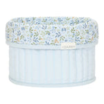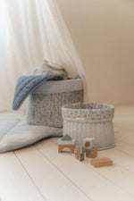 Keep the nursery organized and tidy with this decorative padded storage basket. Made of high-quality 100% organic cotton poplin, this round basket offers both style and functionality. Reversible with a folded edge, it has a Forest Adventure design on the outside and a casual Denim Blue color on the inside. Perfect for storing toys, blankets, towels, diapers and other accessories, so that the room is tidy and offers space for creativity and play.