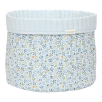 Keep the nursery organized and tidy with this decorative padded storage basket. Made of high-quality 100% organic cotton poplin, this round basket offers both style and functionality. Reversible with a folded edge, it has a Forest Adventure design on the outside and a casual Denim Blue color on the inside. Perfect for storing toys, blankets, towels, diapers and other accessories, so that the room is tidy and offers space for creativity and play.
