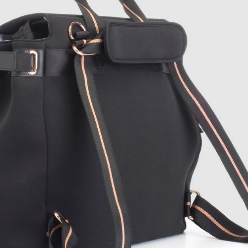 Clean lines and technical scuba combine to make the St James the most desirable convertible changing bag to date. Sports luxe styling does not compromise versatility, the interchangeable silhouette means you can convert from backpack to shoulder bag seamlessly.