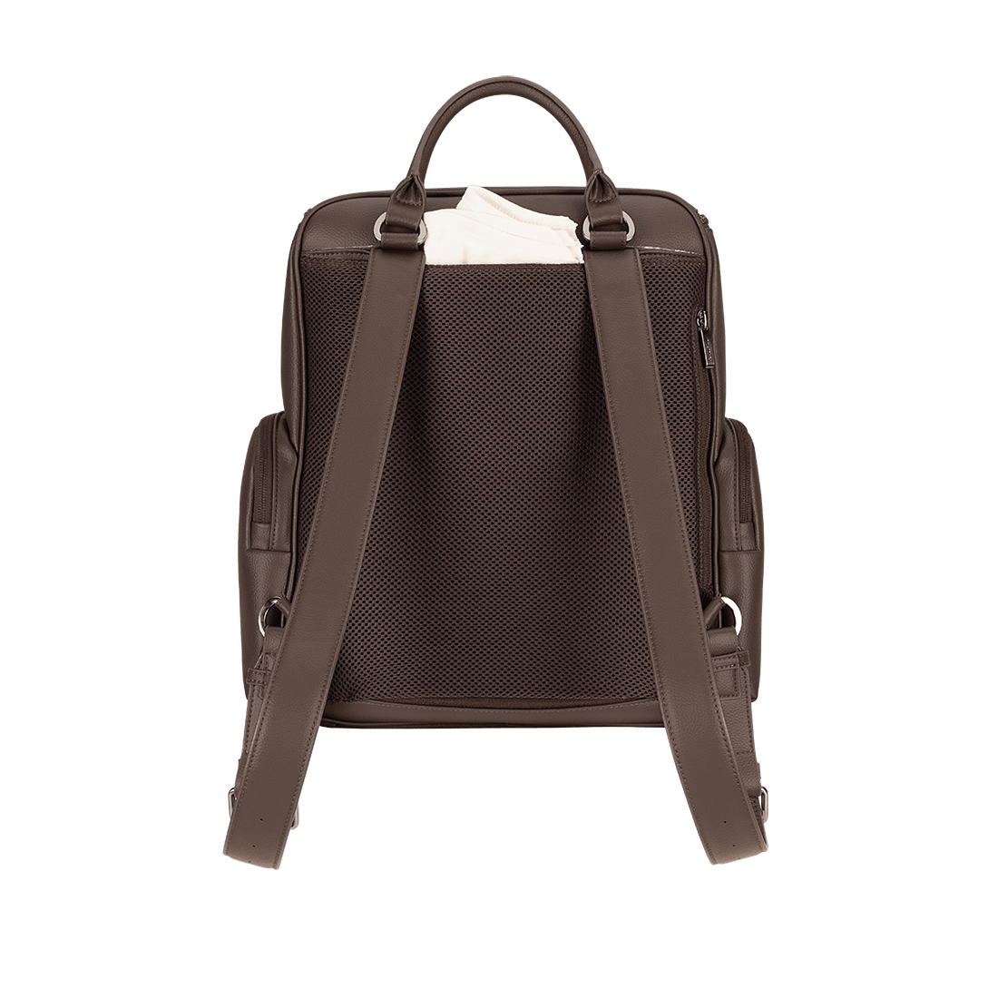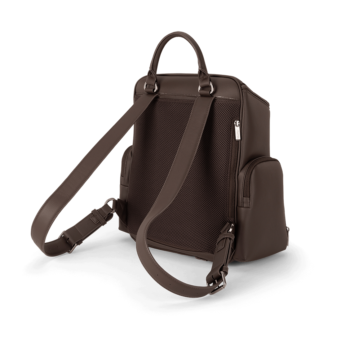 The Essential bag redefines everyday luxury with its chic leatherette styling and versatile parenthood functionality. Crafted as a multi-tasking backpack that also serves as a diaper bag, it features a laptop-friendly design with a thoughtful array of exterior and interior pockets, a handy changing pad clutch, and a luggage trolley sleeve for travel convenience.