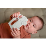 This Little Dutch teething ring in the shape of a bus is the ideal teething toy to ease your baby's pain as first teeth come through. The teething ring is made of silicone and is specially designed to be easily grasped by little baby hands. Packaged on a backcard. Suitable for children 4 months and older.
