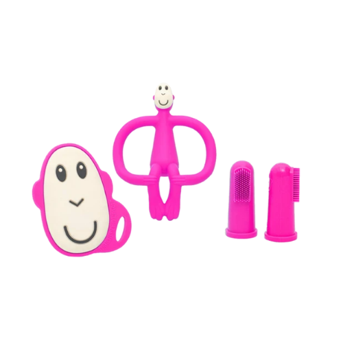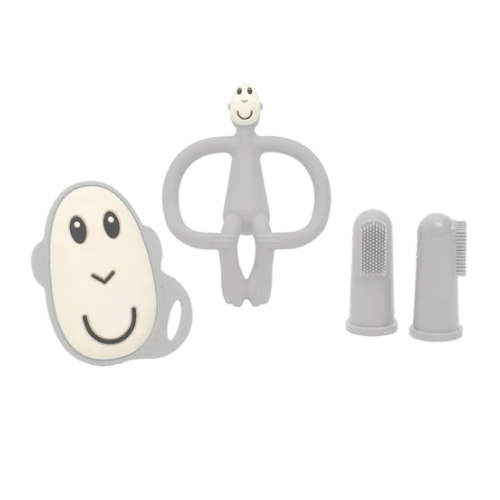 The Flat Monkey Teethers are small, lightweight, and great for tiny hands - ideal to keep in your bag when you are on the go. Our Silicone Finger Toothbrushes are the perfect first toothbrush for your baby. Soft and gentle on the gums from the very first tooth. All protected with BioCoteĀ® Antimicrobial Technology reducing microbes on the surface making our products hygienically cleaner than any other teethers.