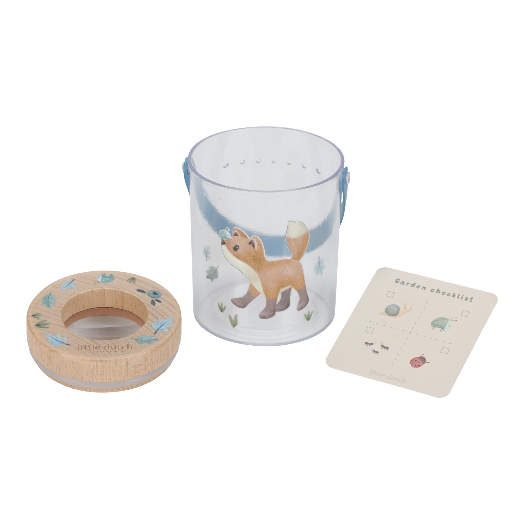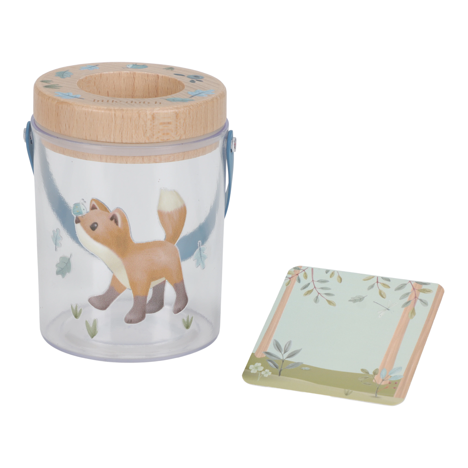 Discover the world of insects with this practical insect jar! The wooden lid, equipped with a magnifying glass, lets you see the smallest details clearly. The lid can be easily removed, and the jar is decorated with cheerful Forest Friends illustrations. An insect card is included to tick off all the insects. The transparent plastic lets you see the insects from all sides, while the air holes provide ventilation. Perfect for curious children who want to explore nature!