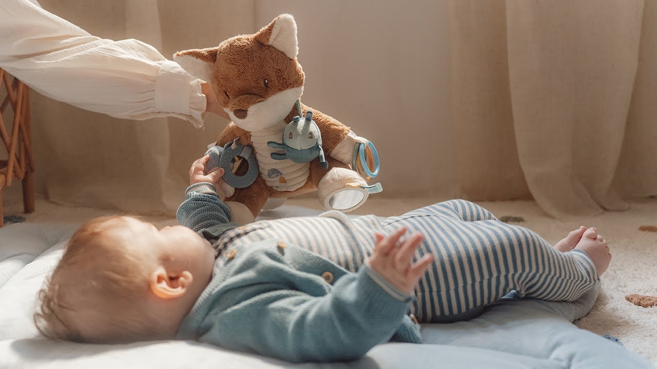 Hug and play! This lovely fox promises more than just cuddles. Discover all the engaging activities that it hides. There’s a crinkly beetle on its shoulder, a rattling sound, and labels and an acorn and mushroom to touch and feel. The rings around the leg and the mirror on one foot – so many details to spark your little one’s curiosity. And after all that play, the adorable fox inspires the sweetest dreams about an enchanted forest where Forest Friends play.
