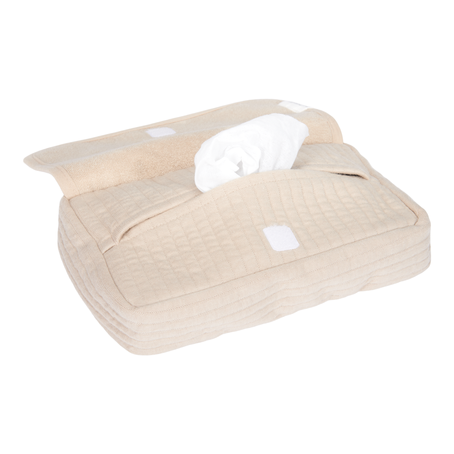 Thanks to this beautiful cover, wipes no longer need to be hidden in a drawer, but can be seen on the changing table! The opening makes it easy to slide the cover over the packaging. The cover looks great in the nursery in combination with Little Dutch storage baskets and the Little Dutch changing mat cover! You can close the baby wipes cover tightly with the Velcro closure. This makes the wipes dry out less quickly. The inside of the flap has a water-repellent coating.