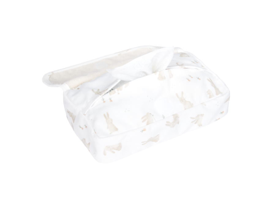 Thanks to this beautiful cover, wipes no longer need to be hidden in a drawer, but can be seen on the changing table! The opening makes it easy to slide the cover over the packaging. The cover looks great in the nursery in combination with Little Dutch storage baskets and the Little Dutch changing mat cover! This Little Dutch Baby wipes cover Baby Bunny is made of 100% cotton.