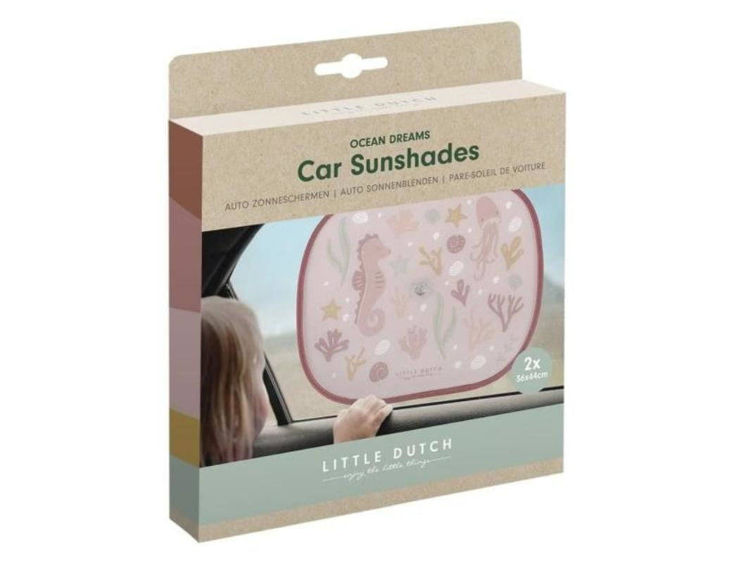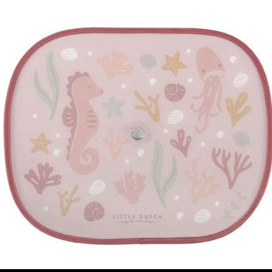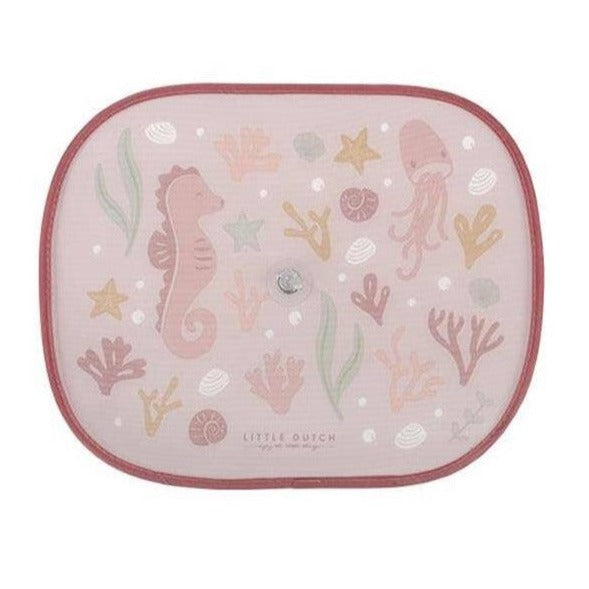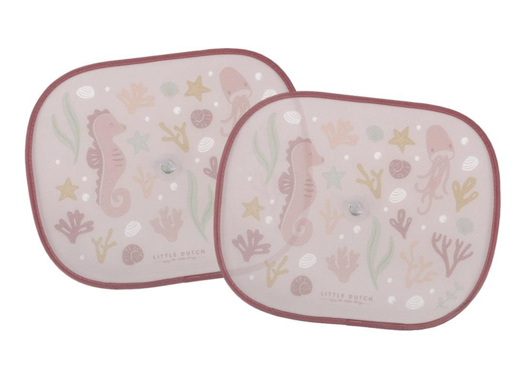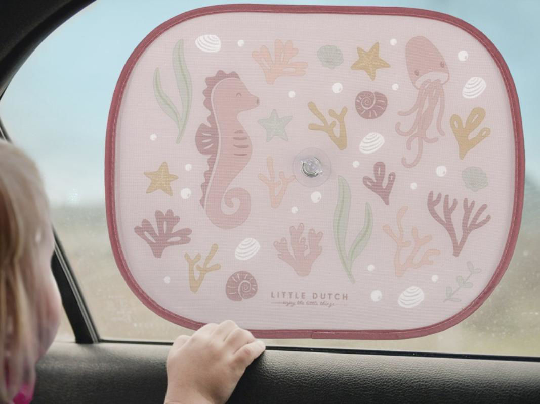 Let's get started! Ensure the comfort and safety of your child during a car trip with these two pretty sunshades. They protect your child from sunlight and UV rays and keep some of the heat out. Use the suction cups to easily attach the sun shades to the side windows and keep the interior cool. The Ocean Dreams Pink design brightens up the car in style. 1 sun visor is approximately 45x37 cm and fits on most car windows.