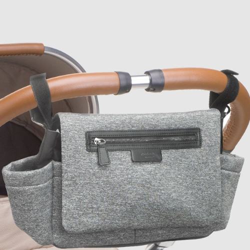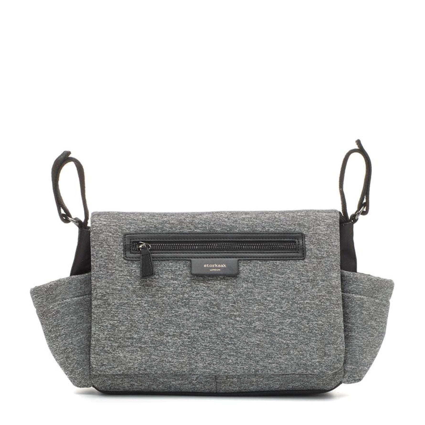 A refined way to stow all your daily essentials on your stroller. Crafted from durable, water-resistant scuba material, complemented with statement hardware details. This accessory is a universal fit to most stroller bars and handles.
