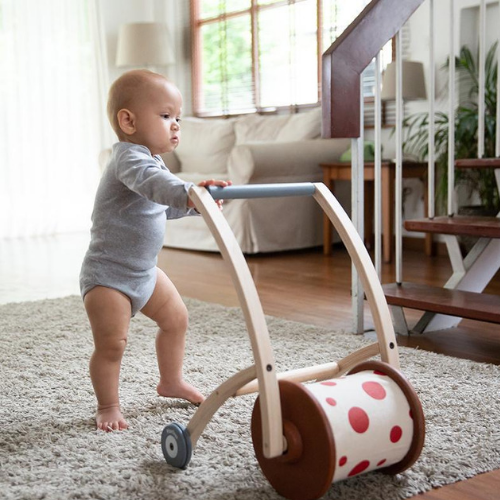 Encourage your child’s first steps with this Roll N Walk! As the wheel turns, the bell inside will create a ringing sound that prompts kids to walk. The handle can be adjusted to 2 different angles. Unscrew and take apart the back wheels to play as a push toy.