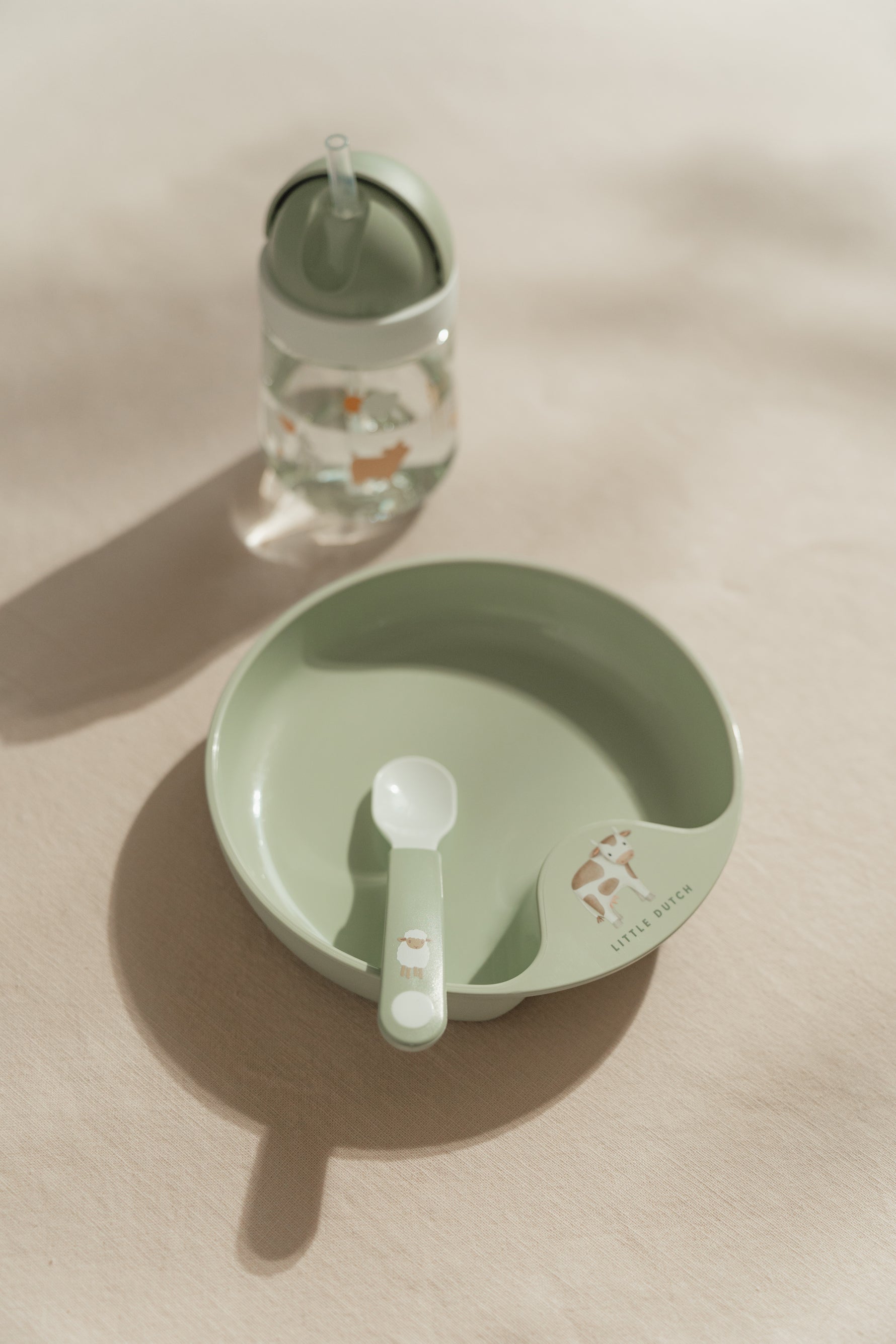 The plate has a clever curved shape in the side that helps your child to scoop food onto their spoon. If you're feeding your child yourself, the curve also functions as a handy thumb rest to prevent you from getting food on your own hands. Twice as handy! The Mepal Mio trainer plate has a practical, non-slip base that keeps it firmly in place. The plate is microwave safe, so you can warm up a portion of food quickly and easily. The plate is BPA-free and can be cleaned in the dishwasher after use